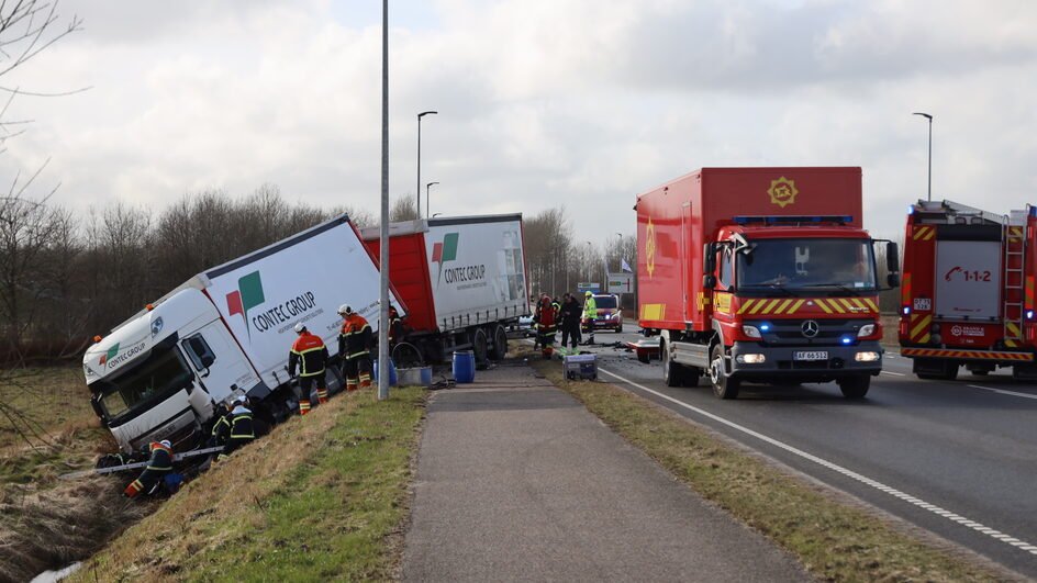اصطدمت سيارة ركاب بشاحنة وجهاً لوجه بعد ظهر يوم الأربعاء  على الطريق الرئيسى رقم 195 بين Hammerum وIkast.