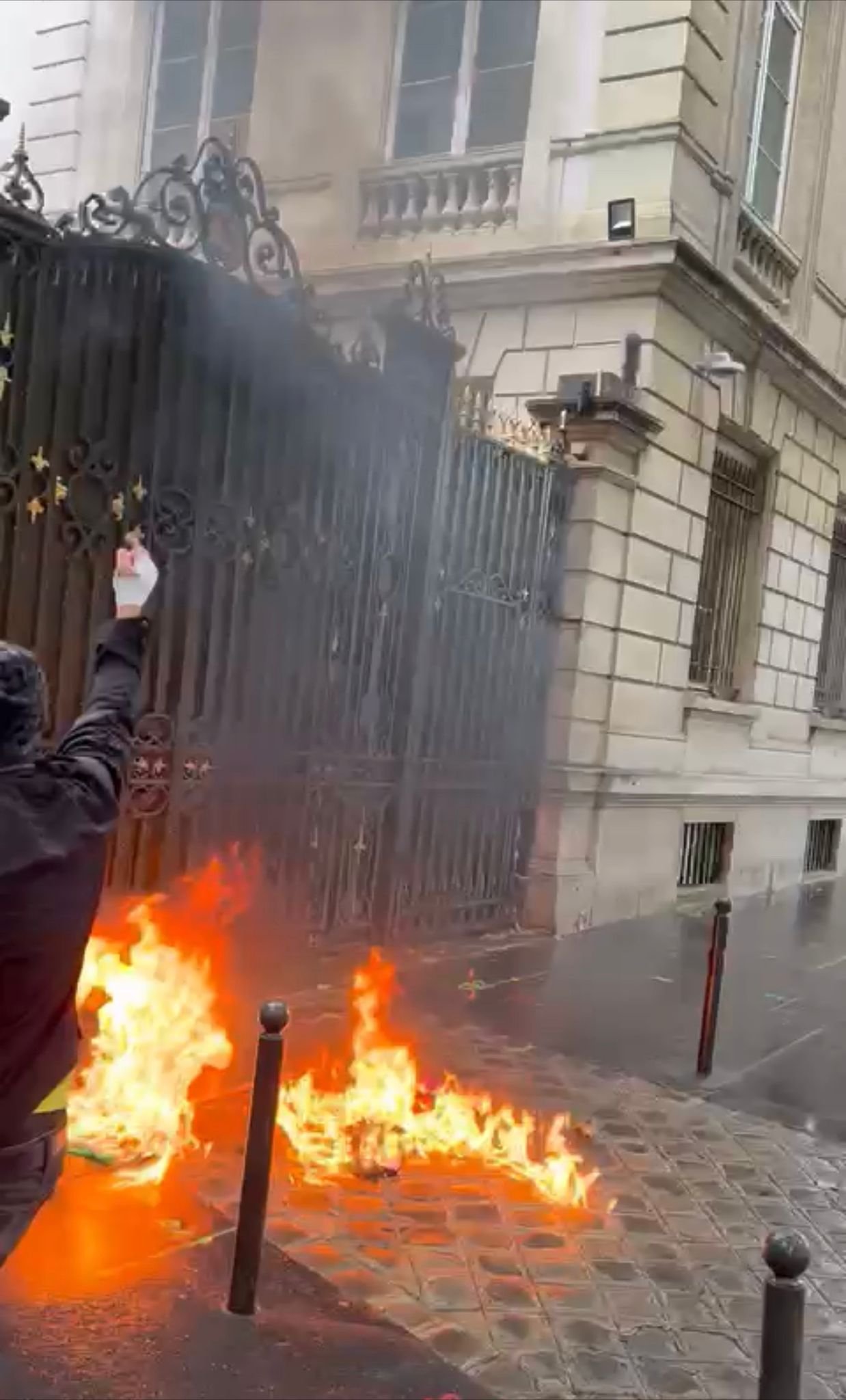 محتجون ضد حرب اوكرانيا يحرقون أعلام الإمارات ويحاولون اقتحام السفارة في باريس