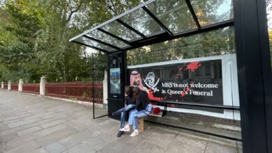 مظاهر احتجاج ضد مشاركة محمد بن سلمان في جنازة ملكة بريطانيا